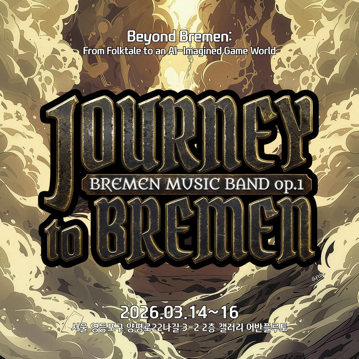 고전 동화 ‘브레멘 음악대’를 생성형 AI로 재해석해 새로운 캐릭터와 세계관으로 확장한 전시이다. 익숙한 서사가 이미지, 영상, 게임적 상상력으로 변환되는 과정을 통해 동시대 창작의 가능성을 보여준다. 2026.3.14.(토)~2026.3.16.(월) 갤러리 어반플루토.