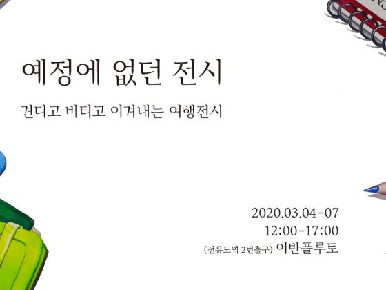 View Post 5260 min 전시종료 어반플루토 전시소식 전시소식 예정에 없던 전시 Posted on 2020-02-202022-11-22byurbanpluto-admin 예정에 없던 전시는 인천, 부산, 나트랑, 여수 여행 후 새로운 길 위에서 보고 느낀 것들을 글과 그림으로 기록하여 공유하는 전시회. 2020.3.4(수) ~ 2020.3.7(토)까지 9호선 선유도역 인근 어반플루토 갤러리에서 관람.